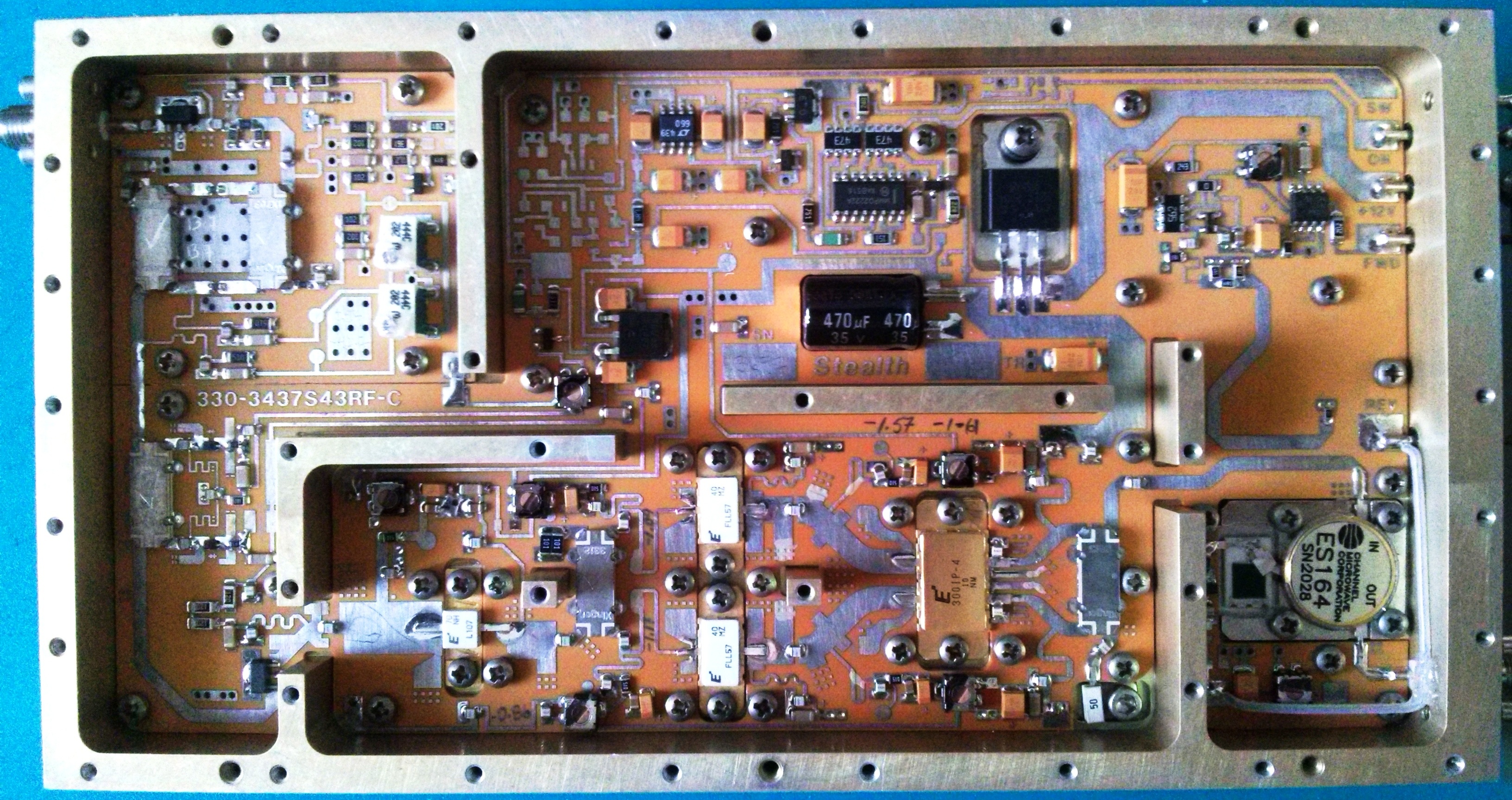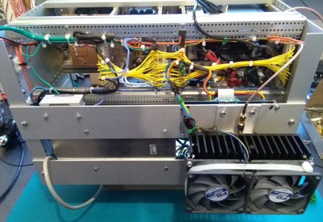 26.Juni 2015 9cm PA. Ein Blick ins Innere. Die Pa liefert satte lineare 20 Watt bei einer Verstärkung von 50dB.