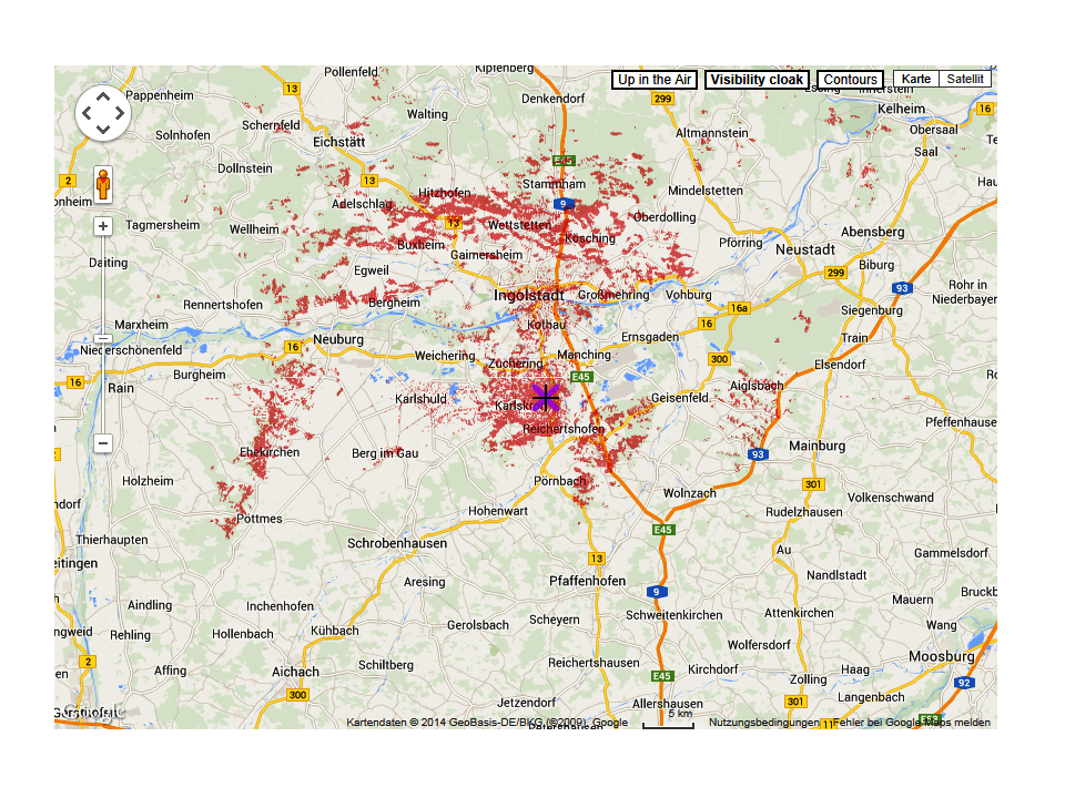 15-Juni-2014 hier eine grafische Darstellung des Einzugsbereiches von DB0ITV. DB0ITV Alle in Rot dargestellten Bereiche haben Sichtverbindung zum Relais Wolfsberg. Das Ganze ist mit heywhatsthat zu Berechnen und Darzustellen.