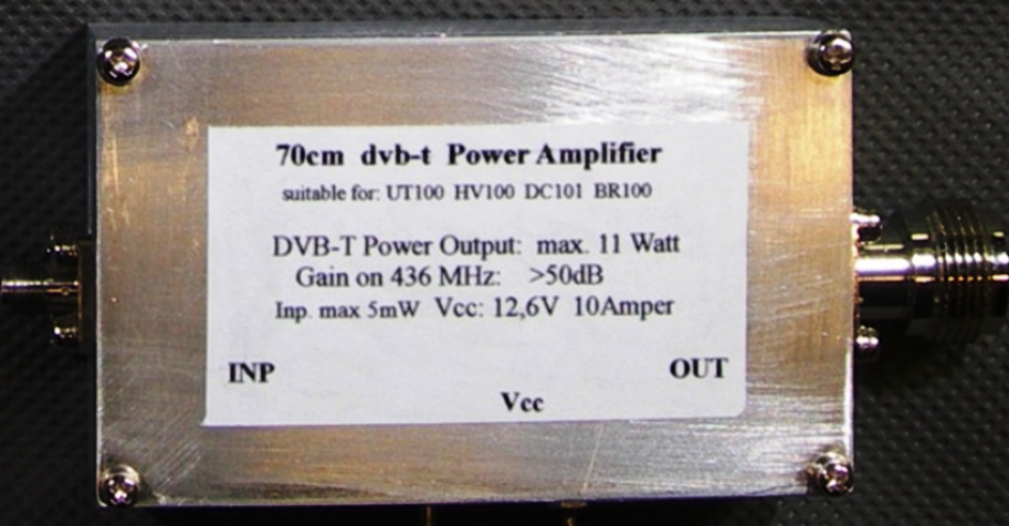 FM-ATV 13cm : DC Power 12 V / 4A, Output ATV TX 200 mW, 6 dB Attenuator, Eingang PA 50 mW, Output PA 5 W, DVB-T 70cm : DC Power 12 V / 8A, Output DVB-T Stick TX -6dBm, 6 dB Attenuator, Eingang PA 1 mW, Output PA 10 W