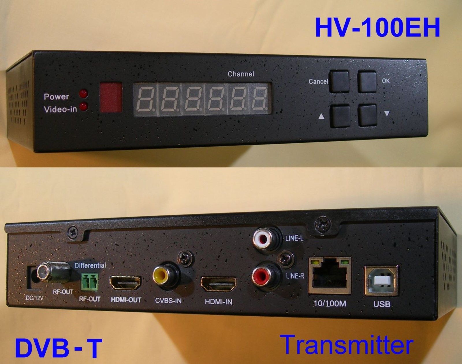 29-April-2014 ein kompletter DVB-T Sender, nur Betriebsspannung, Video und PA anschliessen und der DVB-T Sender ist betriebsbereit. Genaue Spezifikation siehe HV-100EH-spec