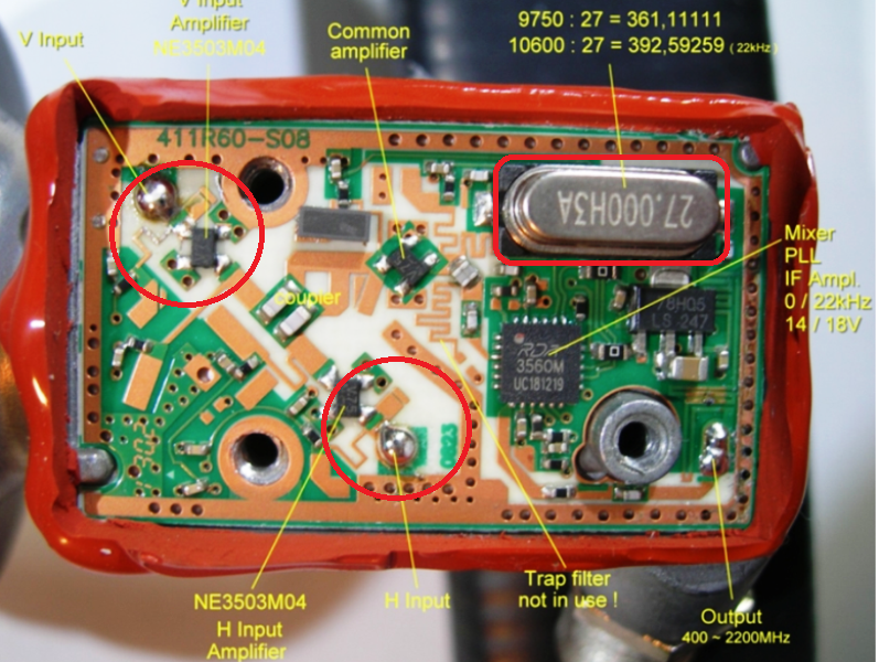Es gibt eine neue Serie LNBs die für Umbau nicht geeignet sind! , Oscilator schwingt nicht richtig bzw. rastet nicht ein.