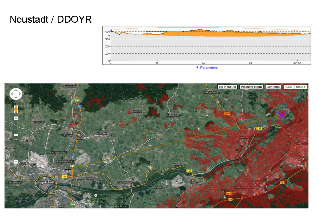 .19-Juli-2014 Ein weiterer DVB-T Ausbreitungsversuch. Dieses mal wurde die Strecke DD0YR zum Relais von OV Neustadt DB0NTV getestet. Hier konnte mit 1Watt Sendeleistung an einer 8-Element Antenne ohne Sichtverbindung ein Bild mit 100% Qualität bei ca. -85 dBm Empfangsleistung erzielt werden. Profil Neustadt/DD0YR